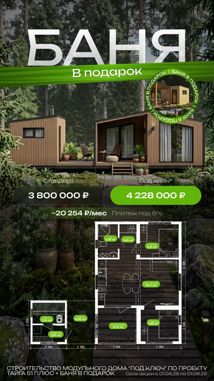 Акция распространяется на проекты: Тайга 51+,